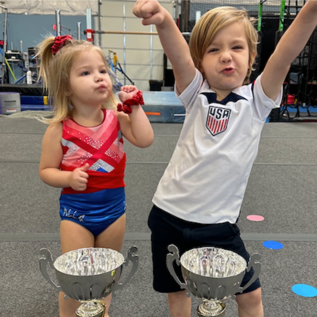 As soon as they master basic skills and following directions, they can move up to our 4 and 5 year old classes such as Mighty Tykes Gymnastics, Mighty Tumblers, Mighty Tykes Cheer, and Little Ninja.